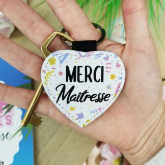 Porte clé “Merci maîtresse” cœur – Collection floral
