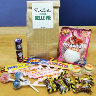 – Contenu : 300g mix de bonbons traditionnels à sucer dont berlingots fruits, bonbons coquelicots, bonbons violettes, pastilles à la menthe, quartiers d’oranges et citrons…