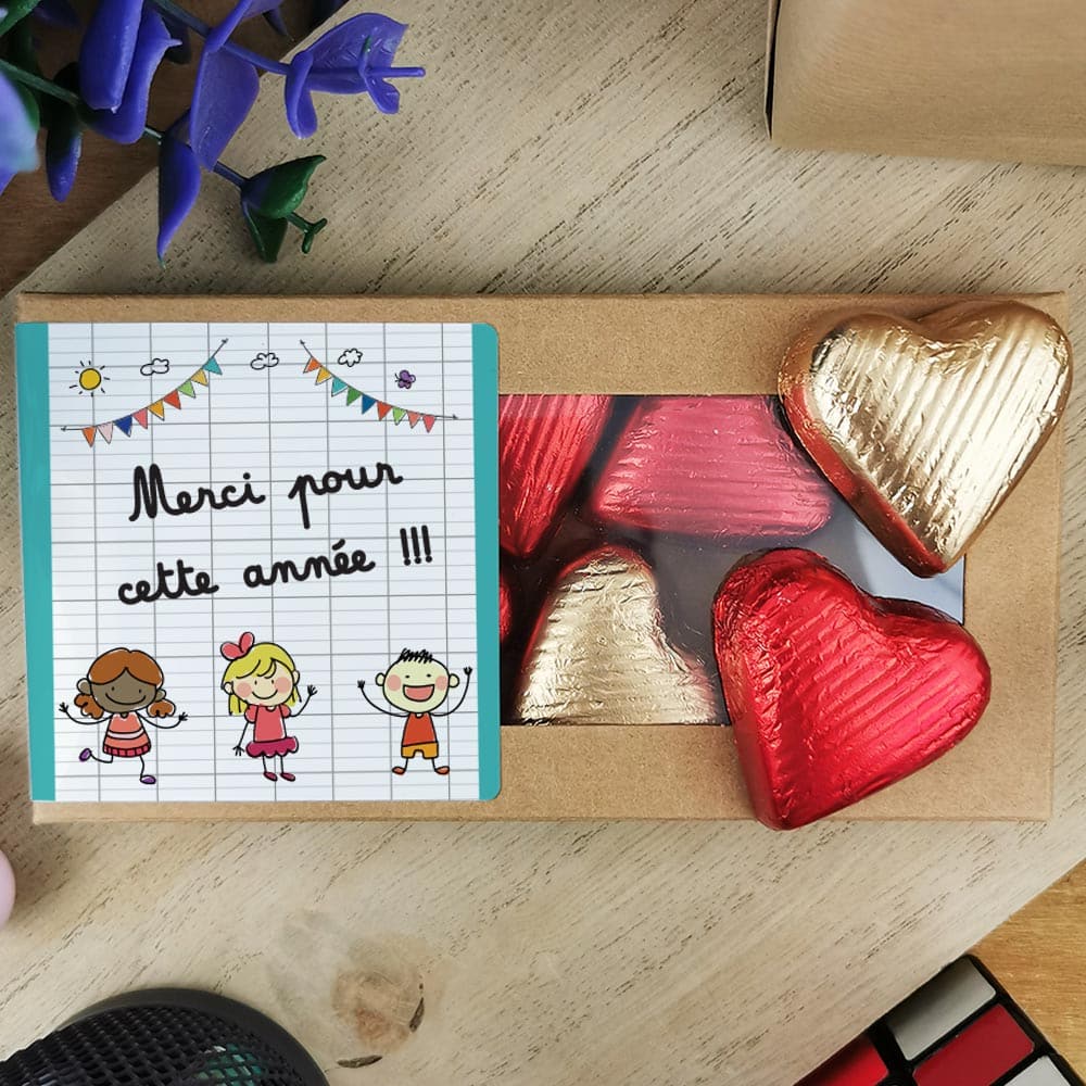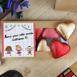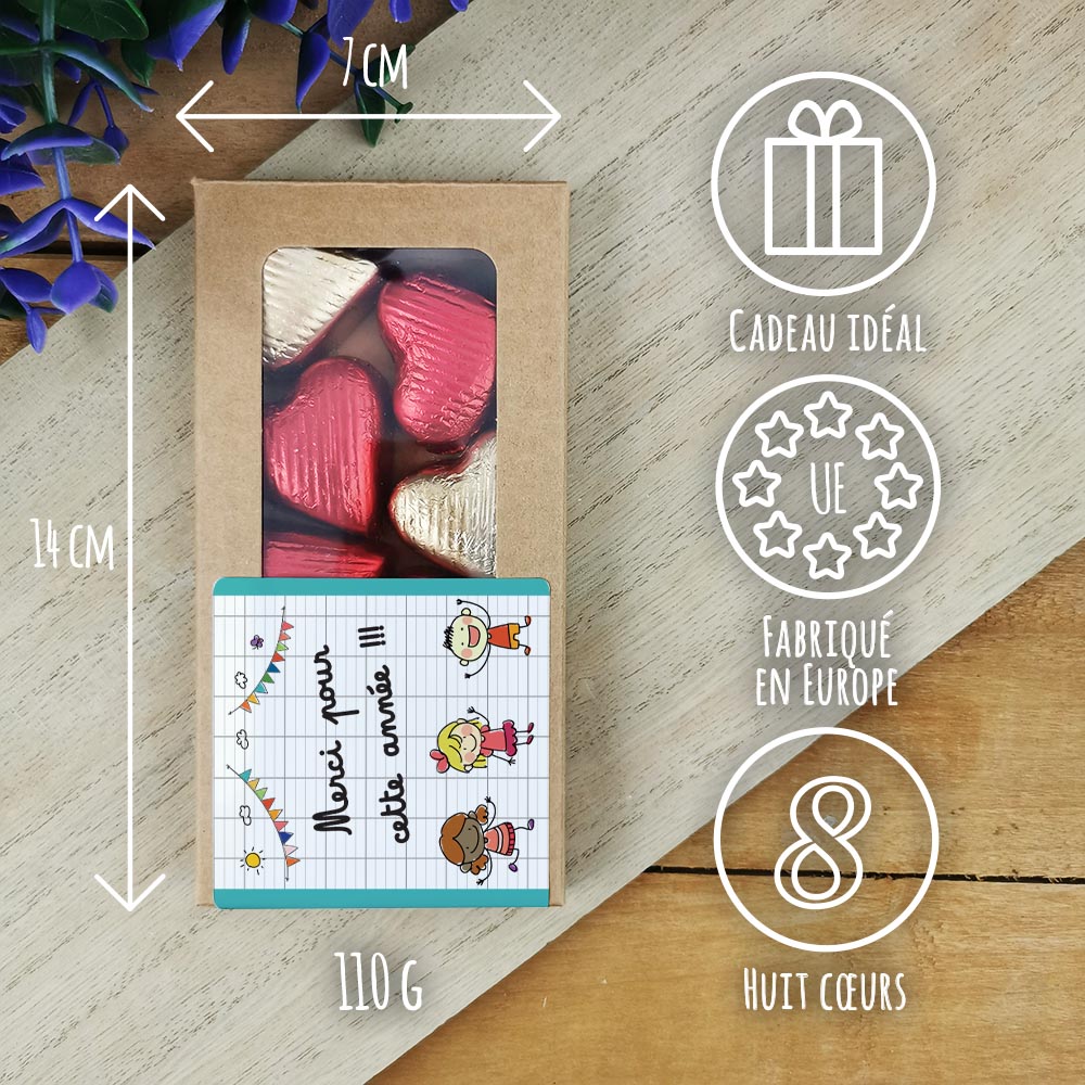 Cœurs au chocolat au lait et chocolat noir praliné x 8 -“Merci pour cette année”