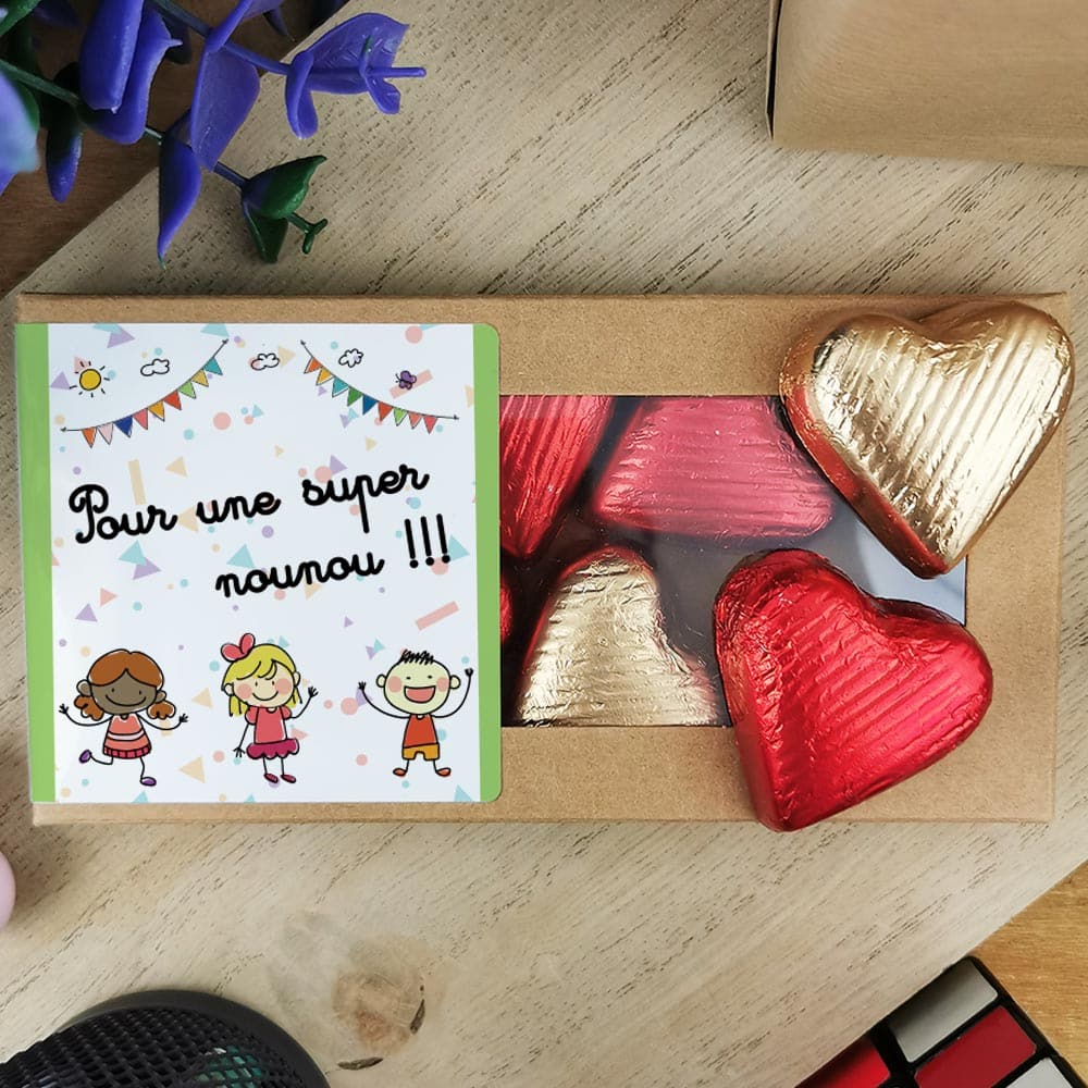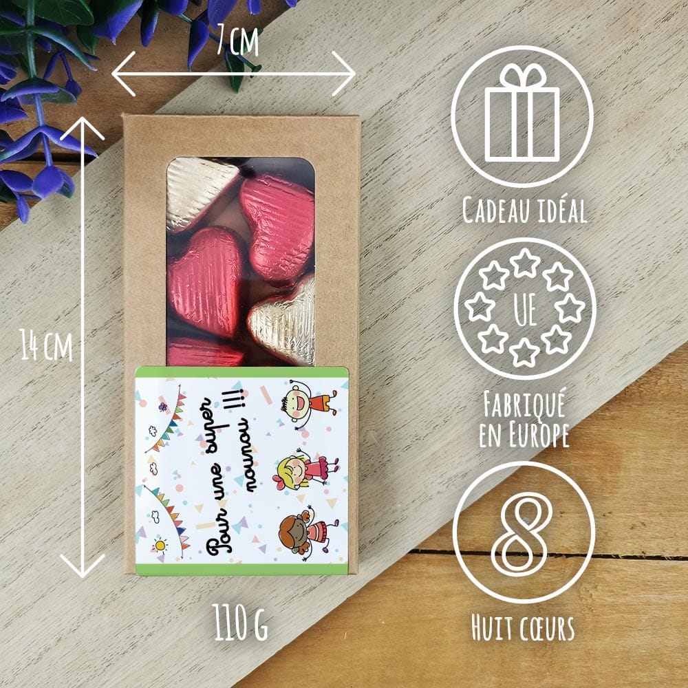 Cœurs au chocolat au lait et chocolat noir praliné x8 – “Pour une super nounou”
