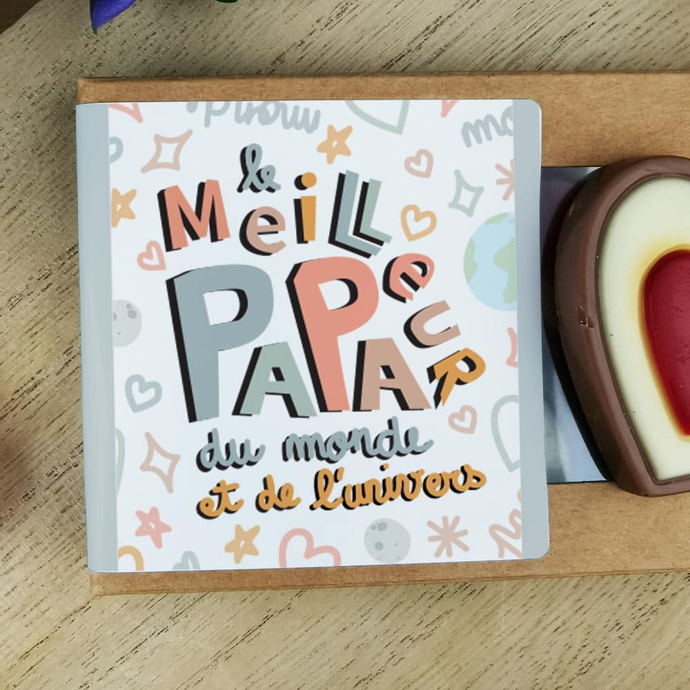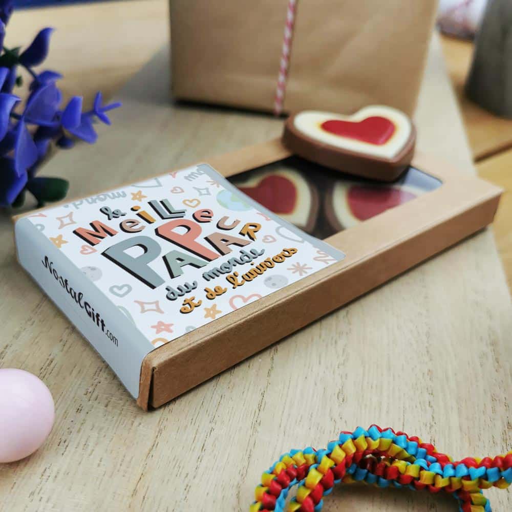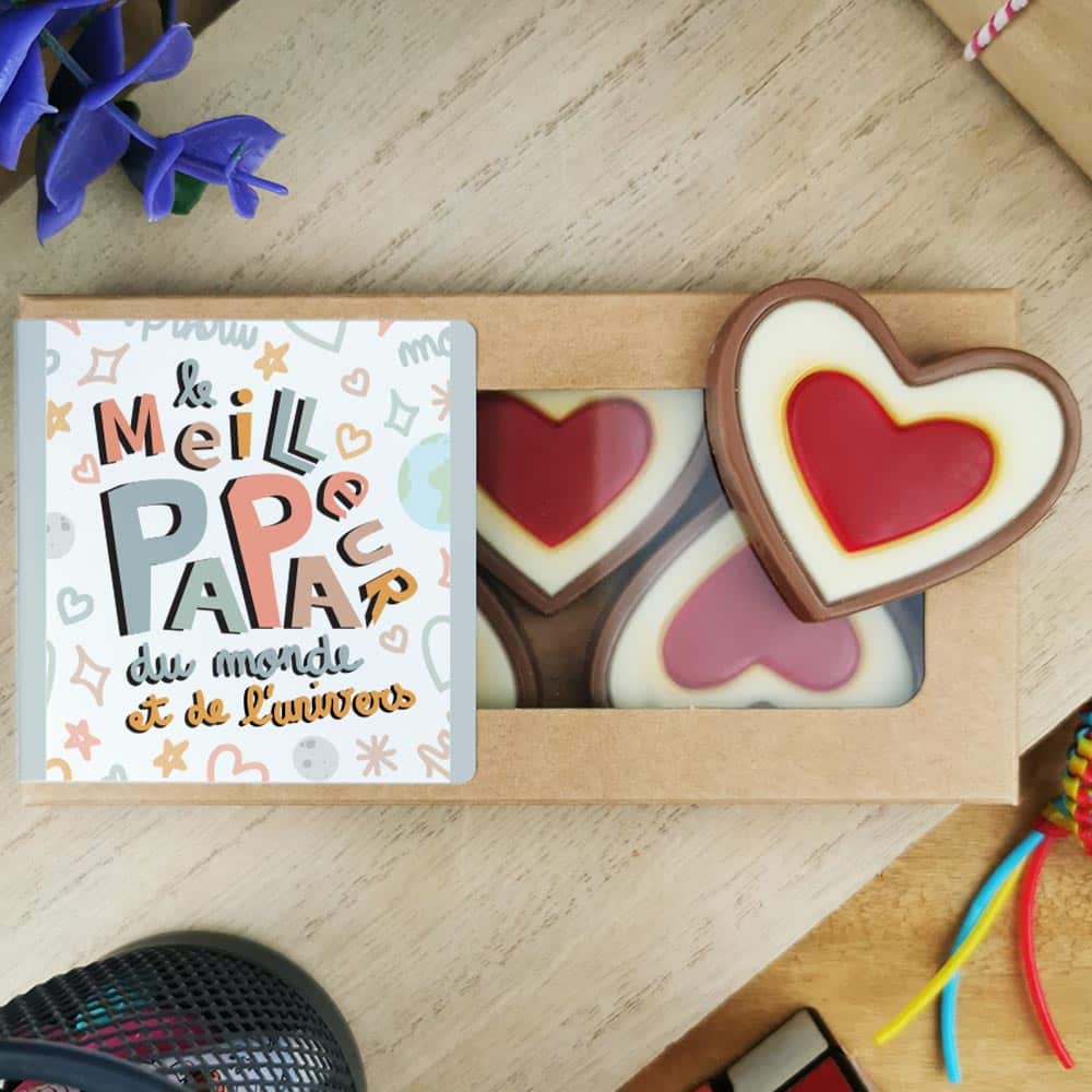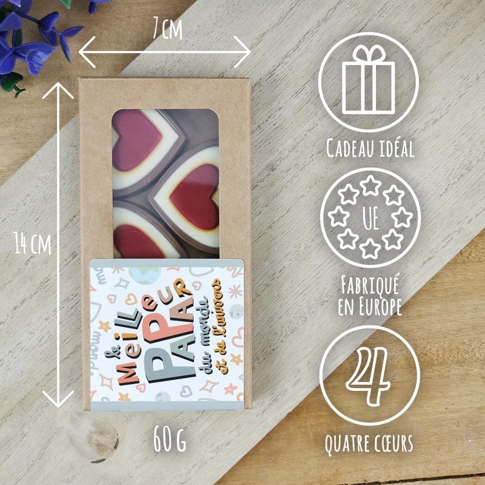 Cœurs au chocolat au lait x4 “Le meilleur Papa du monde et de l’univers”