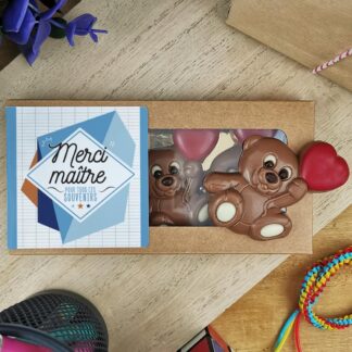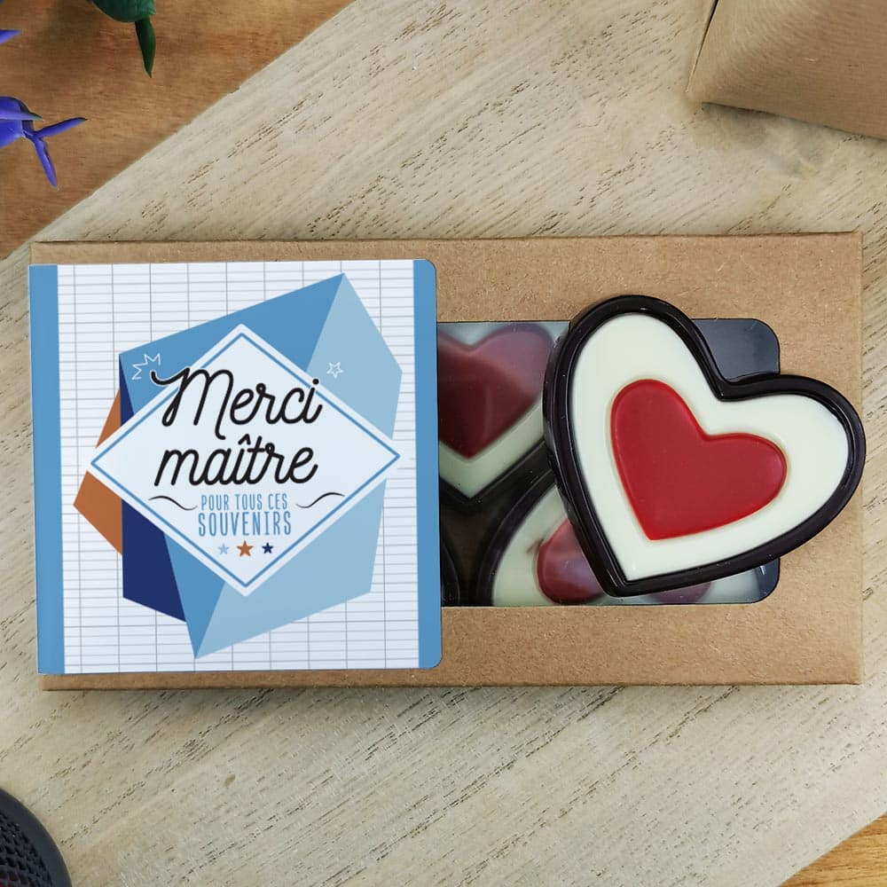 Offrez un cadeau gourmand et délicieux pour la fin de l’année scolaire avec ces chocolats noirs en forme de coeur de la collection “Merci Maître”. De quoi faire fondre la personne à qui vous voulez l’offrir !