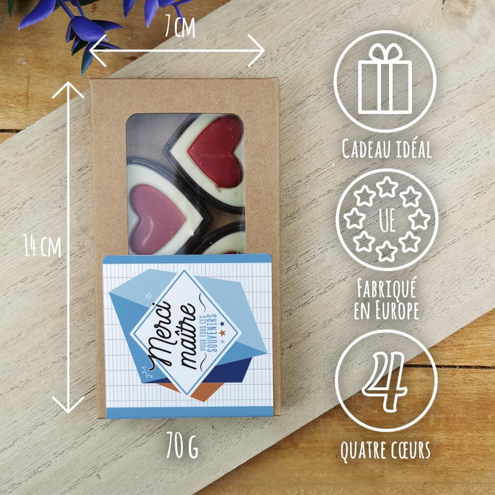 Cœurs au chocolat noir x 4 “Merci Maître”