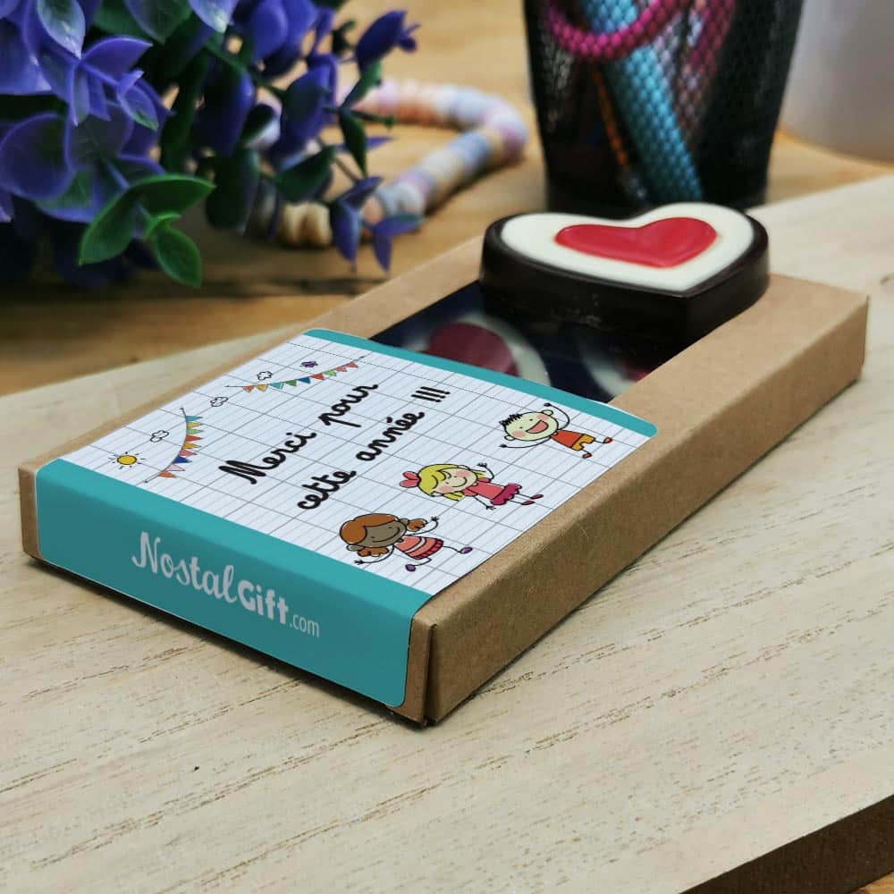 Nostalgift.com, le site d’idée cadeau orignal et rétro, vous présente ses incontournables coeurs au chocolat noir de la collection «Dessin d’enfants». Faites plaisir à la maîtresse ou à votre nounou avec ces gourmandises ! C’est un cadeau à la fois gourmand et symbolique, qui fera chaud au coeur .
