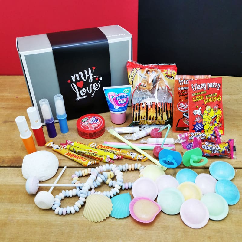 Offrez un cadeau original pour la Saint Valentin ou juste pour faire plaisir à votre amoureux(se)! Ce coffret bonbon lui fera plaisir à coup sûr ! Faites-lui redécouvrir les saveurs d’antan avec des bonbons des années 80 ! Et le tout livré dans une jolie boîte en carton avec un bandeau «My Love».