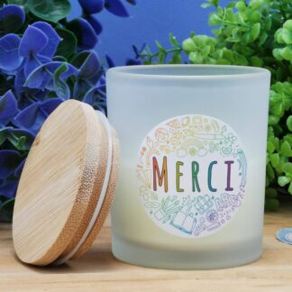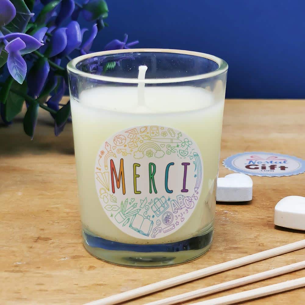 Le doux parfum de cette bougie couplé au diffuseur de parfum enivrera l’intérieur de la personne à qui vous l’offrez. Avec ce petit mot “Merci”, nulle doute qu’elle sera charmée par cette jolie attention. Le diffuseur en verre et le design de cette bougie lui feront plaisir. C’est une très bonne idée cadeau pour la fin de l’année scolaire.