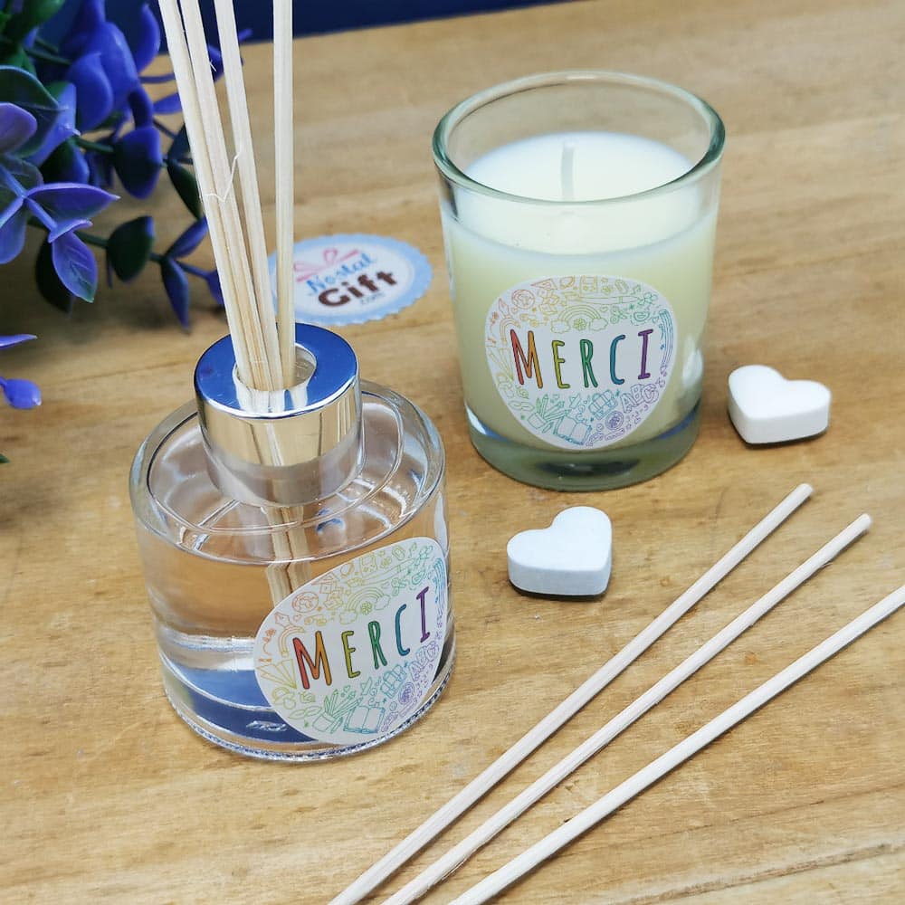 Coffret cadeau “Merci” – Set de diffuseur de parfum + Bougie