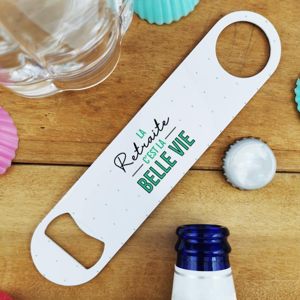 Offrez ce décapsuleur original de notre collection «La retraite c’est la belle vie». Le design de cet ouvre bouteille est conçu en France avec ses couleurs vert .