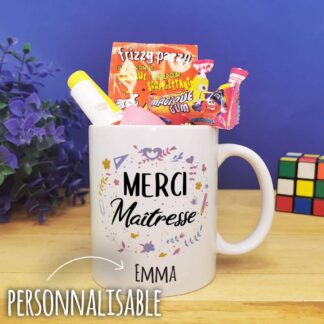 Tasse avec bonbons des années 2000 “Merci Maîtresse” – Cadeau fin d’année scolaire