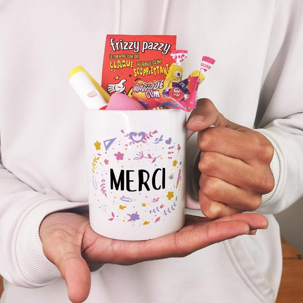 Inscrivez-vous pour avoir accès aux prix revendeursOffrez un cadeau original et pratique pour la fin de l’année scolaire avec notre tasse, arborant «Merci«. Elle est lavable au lave-vaisselle et utilisable au micro-onde et au four, offrant une grande polyvalence pour votre confort au quotidien.