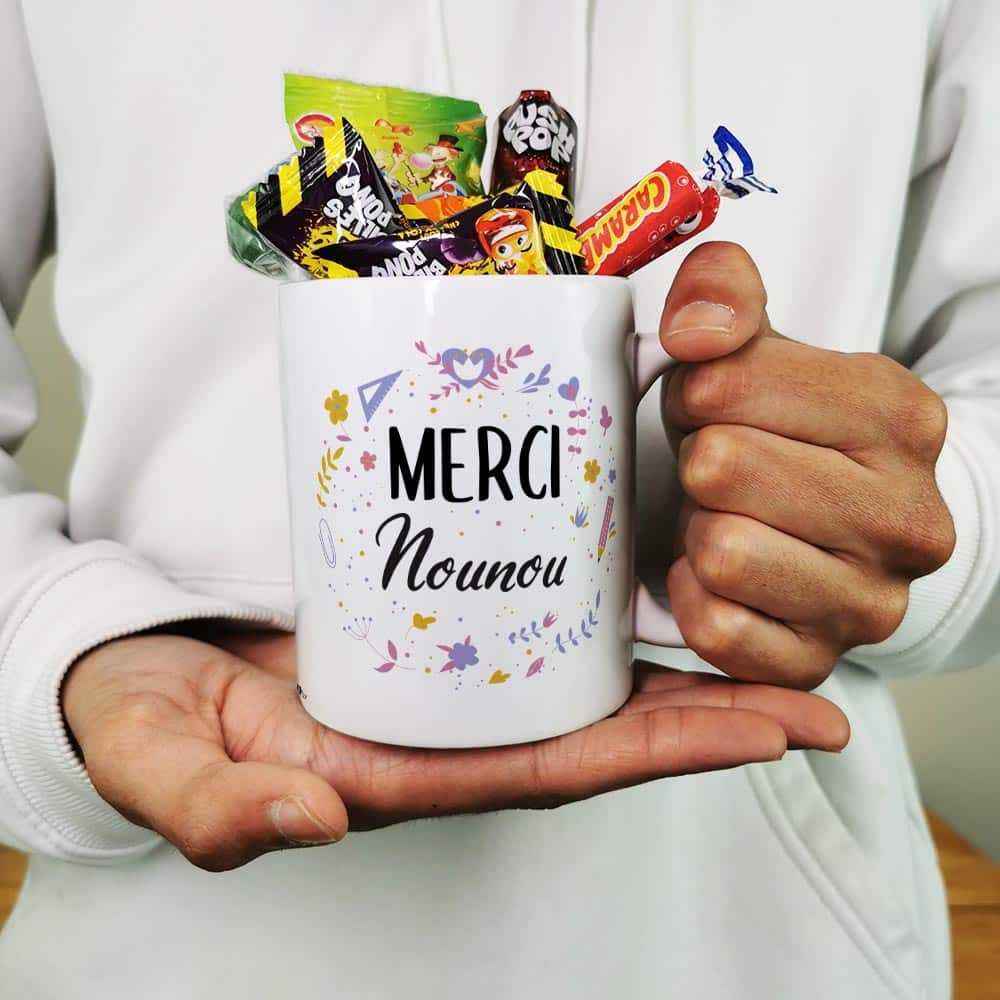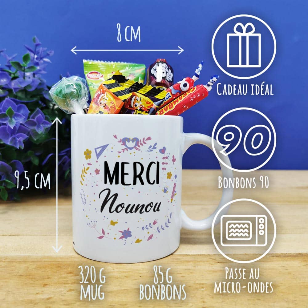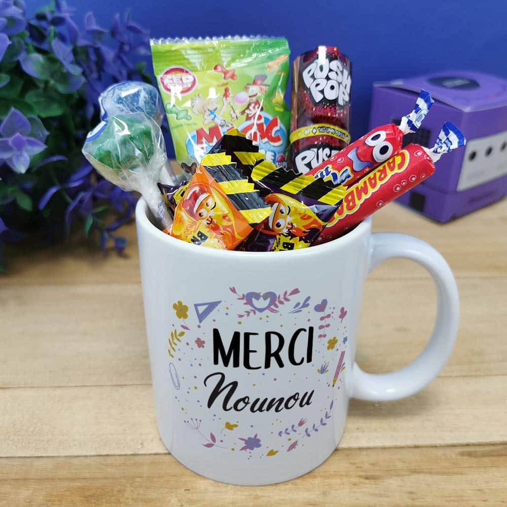 Craquez pour ce mug original rempli de bonbons des années 90 de la collection «florale». Ne manquez pas l’occasion de faire plaisir à votre nounou pour la fin de l’année scolaire ou pour tout autre occasion !