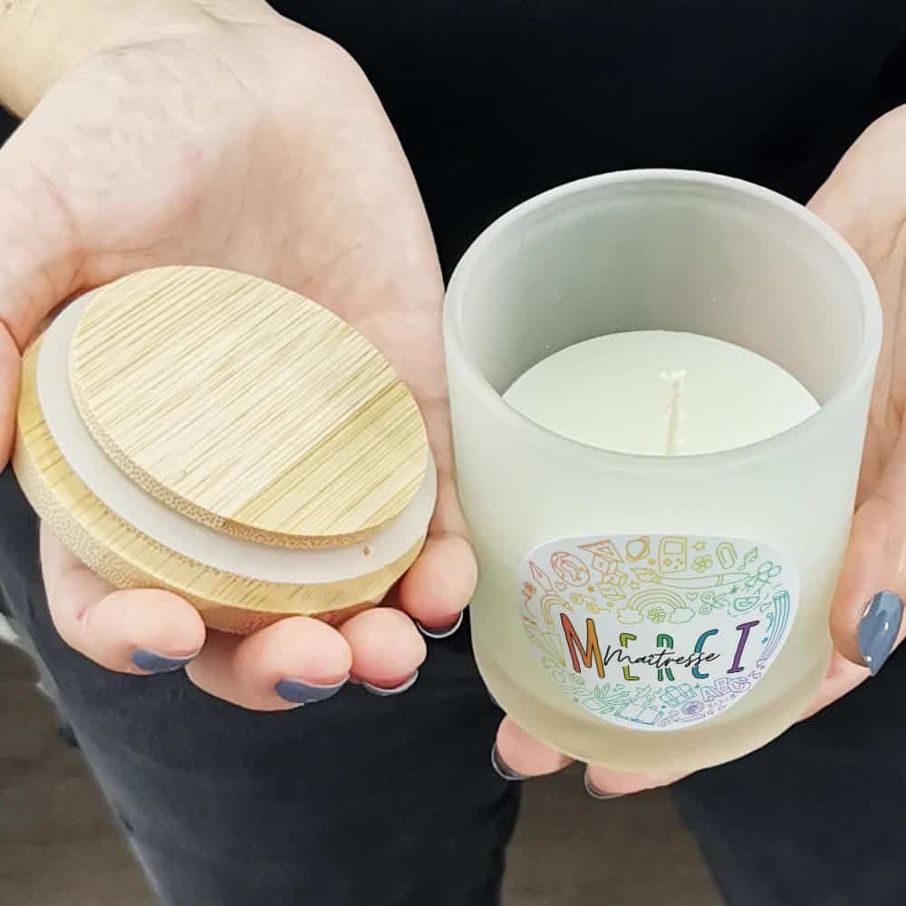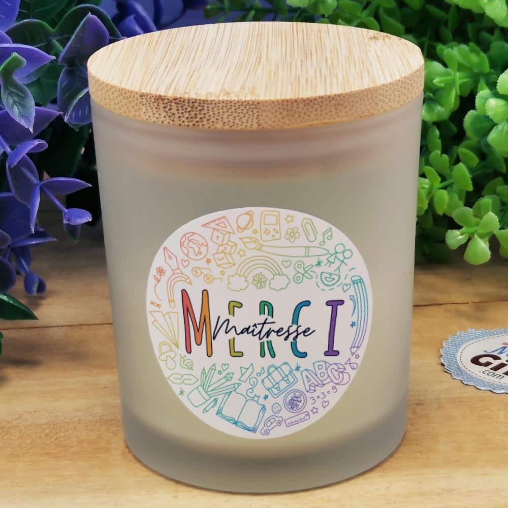 Bougie top bois “Merci maîtresse”- Collection Arc-en-ciel
