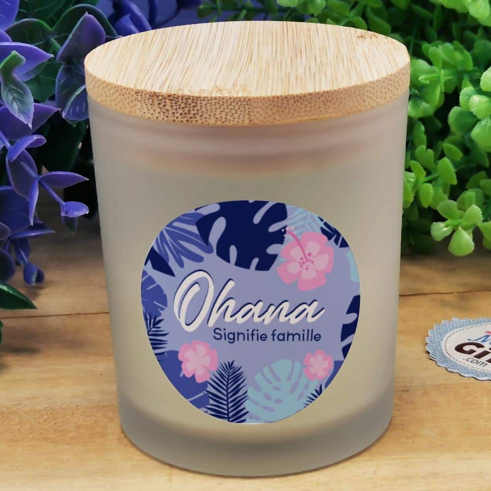 Le doux parfum de cette bougie enivrera l’intérieur de la personne a qui vous allez l’offrir. Avec ce petit mot “Ohana signifie la famille”, nulle doute qu’il/elle sera charmé par cette jolie attention. Le couvercle en bois et la finesse de cette bougie feront forcément plaisir. Ce sera une très bonne idée cadeau pour son anniversaire, Noël ou pour sa fête.