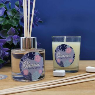 Pour un anniversaire ou pour tout autre occasion, surprenez avec cette jolie bougie aux senteurs de Vanille. Elle est décorée d’une étiquette sur laquelle est marquée «Ohana signifie la famille». Avec son couvercle en bois, cette bougie donnera du style.