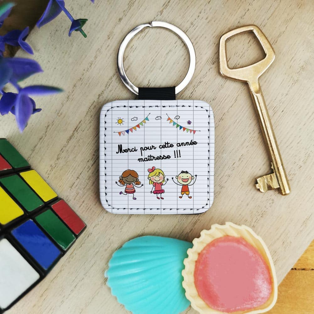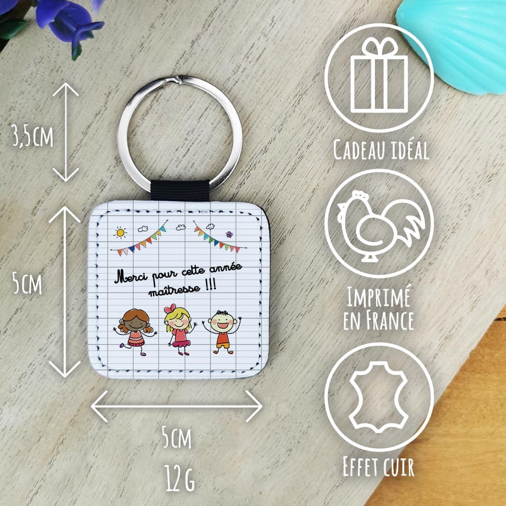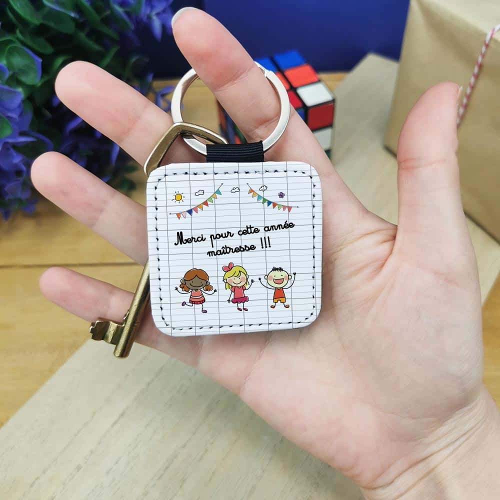 Inscrivez-vous pour avoir accès aux prix revendeursVoici une idée de cadeau original à offrir à la maîtresse pour la fin de l’année scolaire. Le design de ce porte-clé en similicuir est parfait !