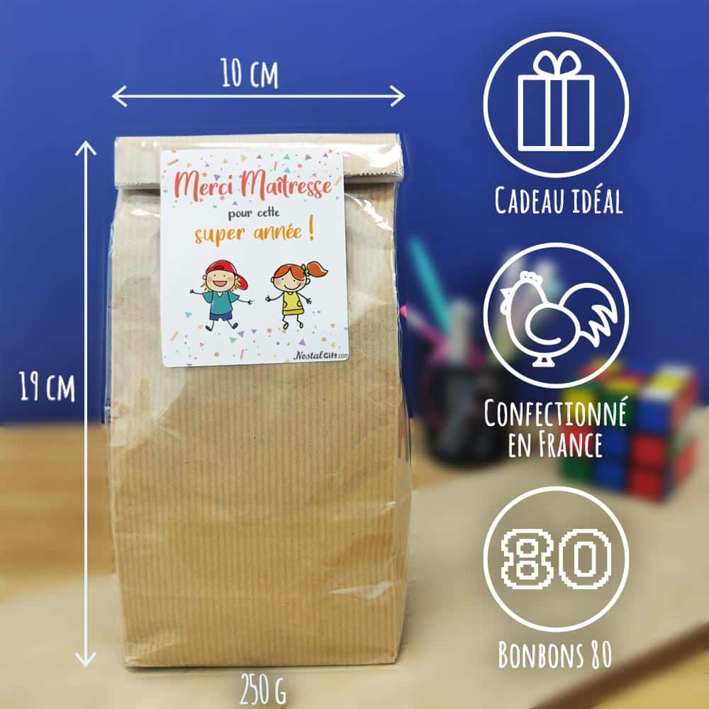 Sachet bonbon 80 “Merci pour cette année maîtresse”- Cadeau pour la fin de l’année scolaire