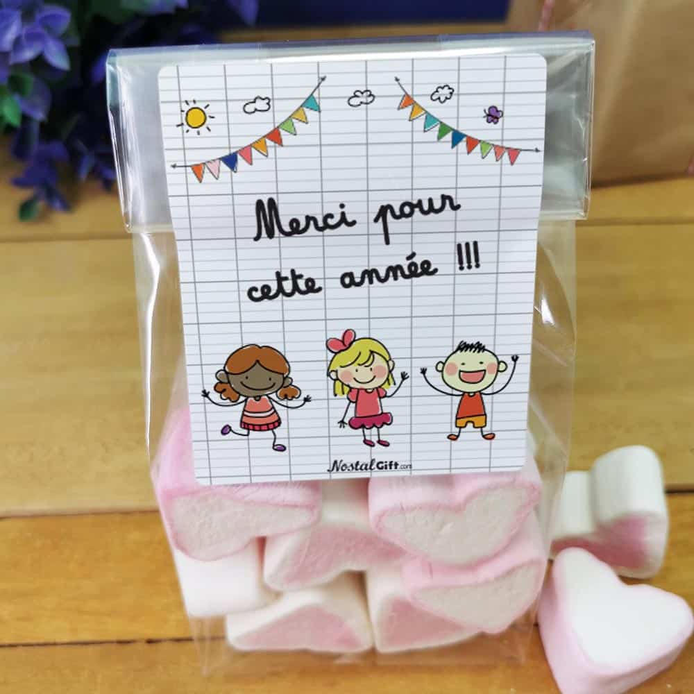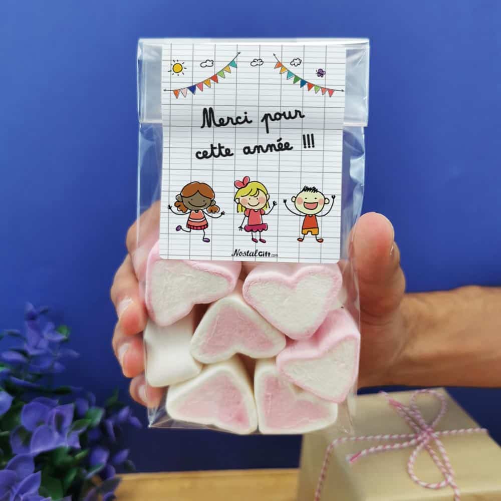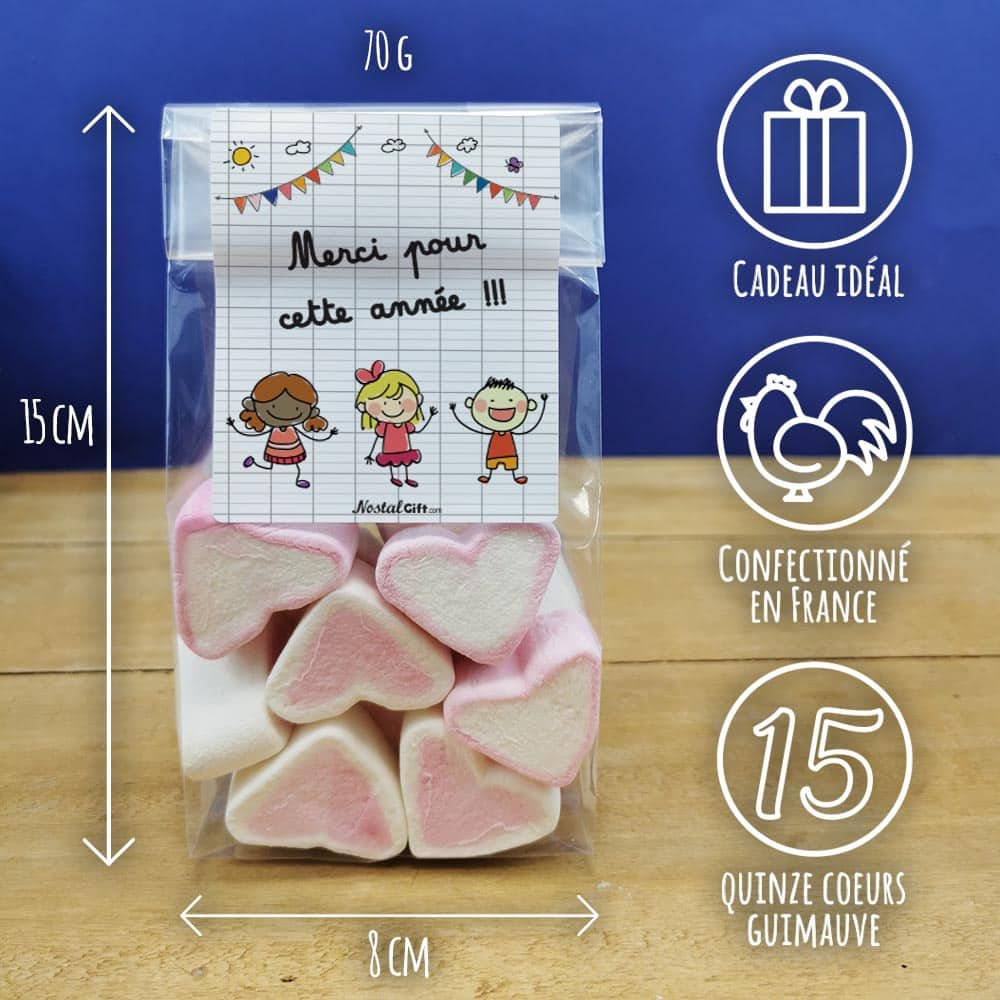 Sachet gros coeurs en guimauve x 15 – “Merci pour cette année” – Dessin d’enfants