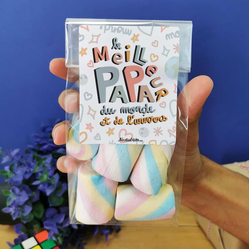 Sachet guimauves torsades x 10 “Le meilleur papa du monde et de l’univers”